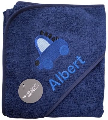 Noch persönlicher wird das Kapuzenhandtuch mit dem Namen Ihres Kindes. Wir besticken das Handtuch am unteren Rand der Kapuze in passender Fadenfarbe.