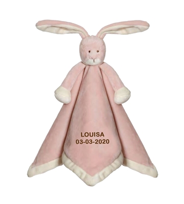 Schmusetuch mit Namen, Hase, Teddykompaniet, altrosa, 2 Zeilen Bestickung
