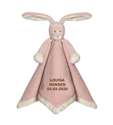 Schmusetuch mit Namen, Hase, Teddykompaniet, altrosa, 3 Zeilen Bestickung